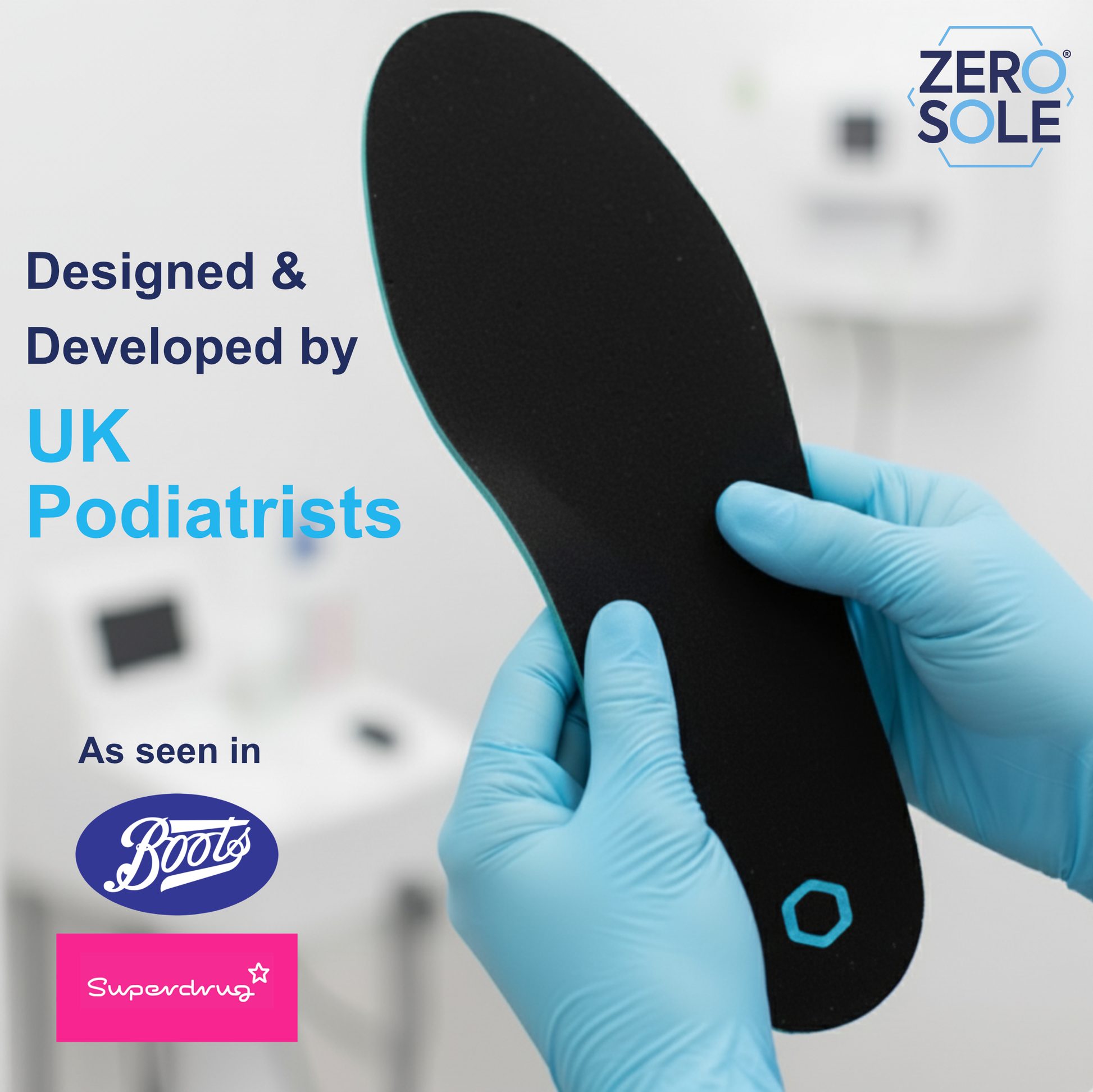 CREATED BY UK PODIATRISTS - designed & developed by podiatrists in the UK, with years of clinical experience in NHS and private practice. ZeroSole was developed using professionally-adopted methods to treat and prevent corns, calluses and many other painful foot conditions: by relieving plantar pressure.